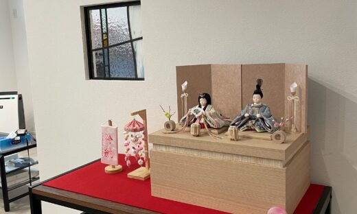 玄関の棚に翠鳳作の兜飾りをお飾りしました。幅30センチほどで飾れるサイズ、伝統的な飾り方ももちろんございますが、今の住宅デザインに合わせやすい飾り方もお選びいただけます。