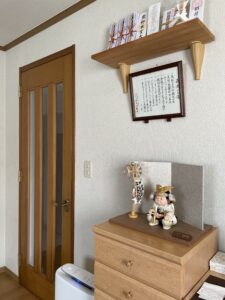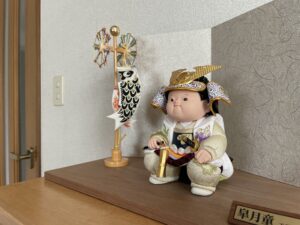 リビングの棚に工房東玉の五月人形をお飾りしました。