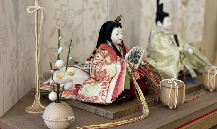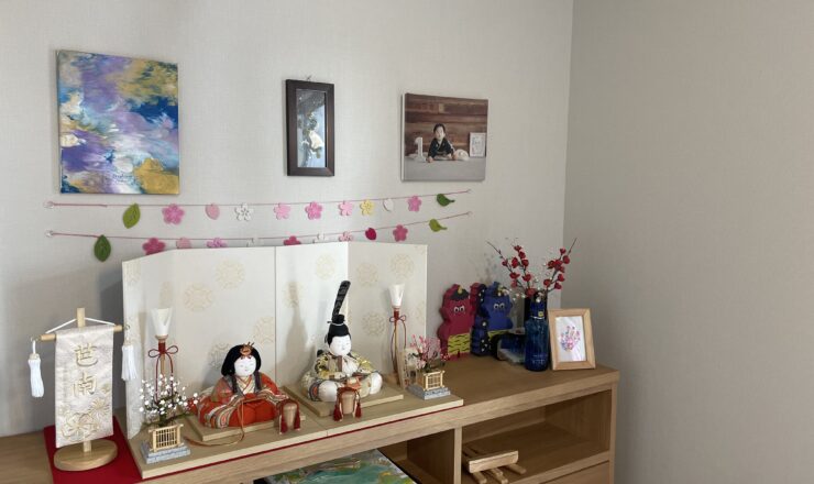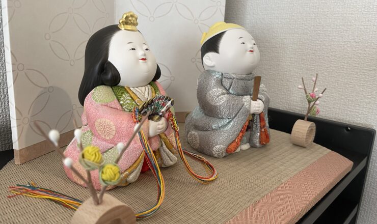 先日お届けしました、和歌山市のお客様の雛人形。 リビングの少し高さのある棚の上に、石川潤平作の木目込のひな人形をお飾りしました。 家族がいつも過ごす...